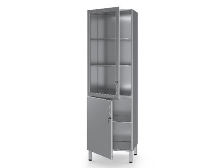 Шкаф медицинский из нержавеющей стали AISI-304, одностворчатый, со стеклом БТ-ШНПР-6-СК