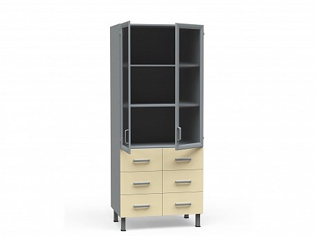 Шкаф-витрина медицинский из ДСП в пластике, со стеклом и ящиками БТ-ШВя-6-80