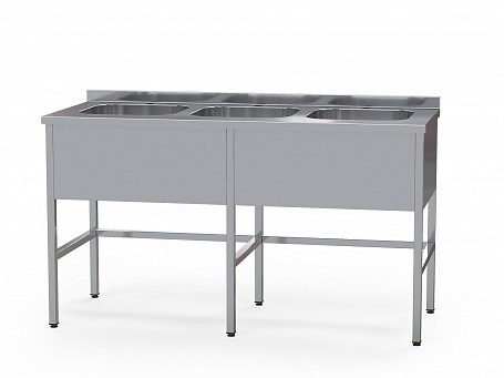 Стол медицинский с 3 мойками, из нержавеющей стали AISI 304, БТ-СМ3