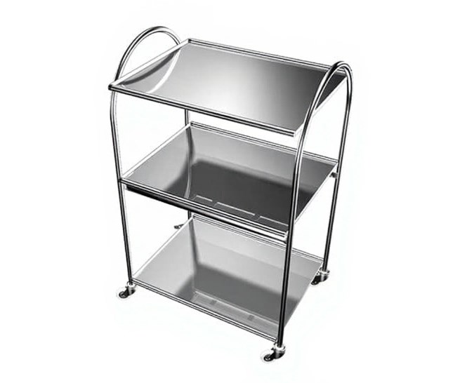 - Столик из высококачественной хромоникелевой нержавеющей стали, позволяет проводить его обработку всеми видами медицинских дезинфицирующих и моющих растворов