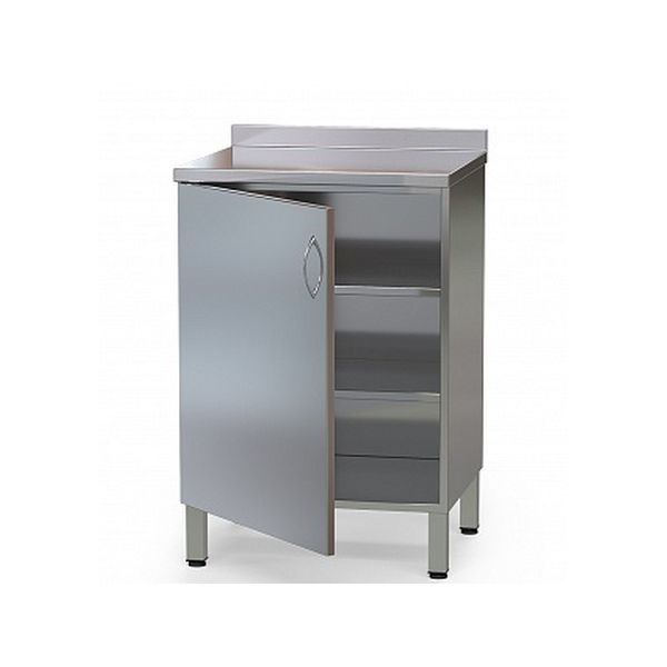 Столешница тумбы изготовлена из нержавеющей стали AISI 304, по заднему борту столешницы имеется бортик, для защиты от затекания жидкостей за тумбу.