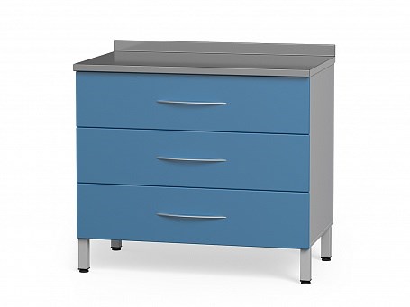 Тумба медицинская металлическая со столешницей из нержавеющей стали, с выдвижными ящиками БТ-29/3.